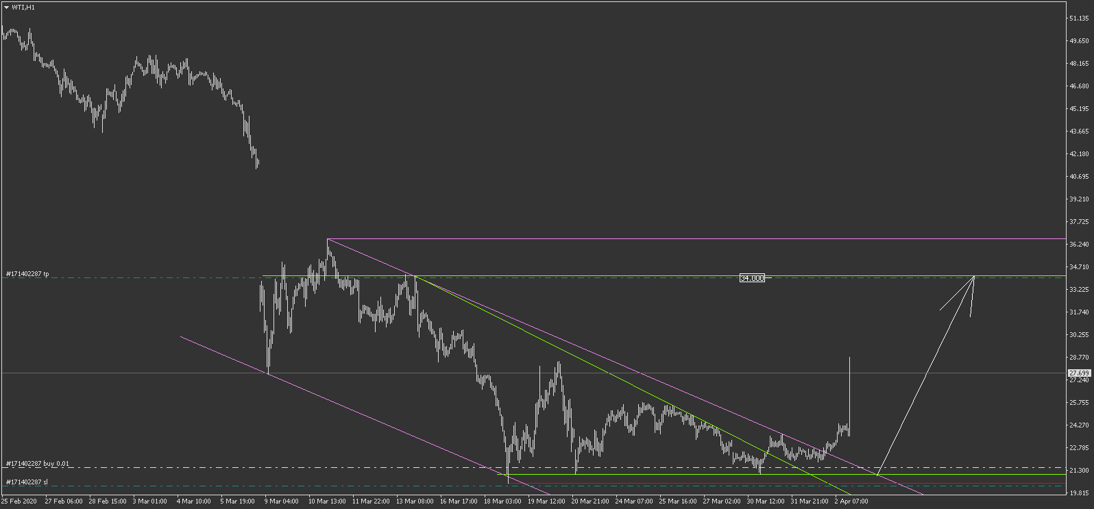 ils ont prévu de un retour a la normal sur le pétrole des que la situation s'améliore, mais du coup, la courbe est impraticable maintenant à l'achat. sauf sur des positions de journée. du coup je regarde d'autre courbe pour le moment. Mais, sur le pétrole WTI, j'ai bien une configuration haussière ou j'ai mis un trade à seulement 0.01 lot juste pour voir.