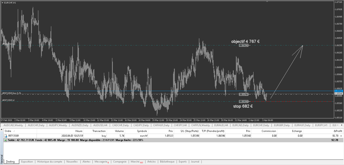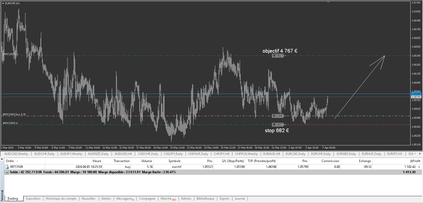 stoppé sur EURUSD, je rentre sur l'EURCHF