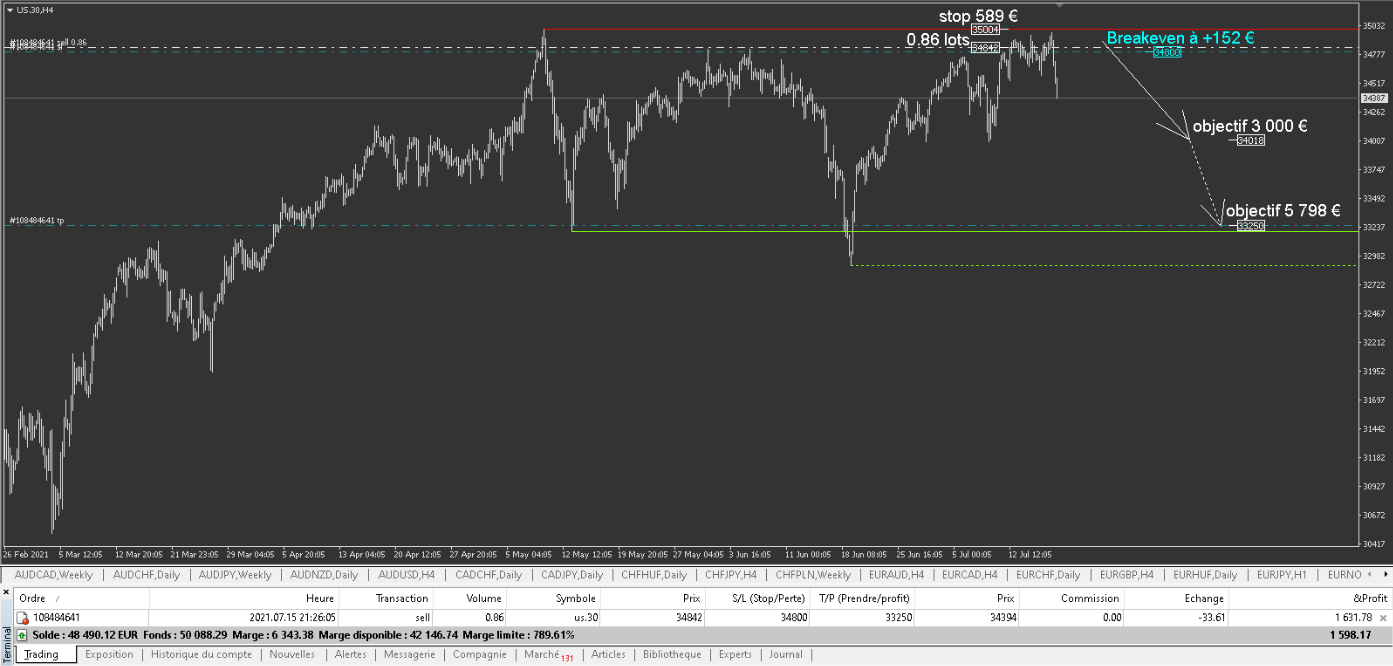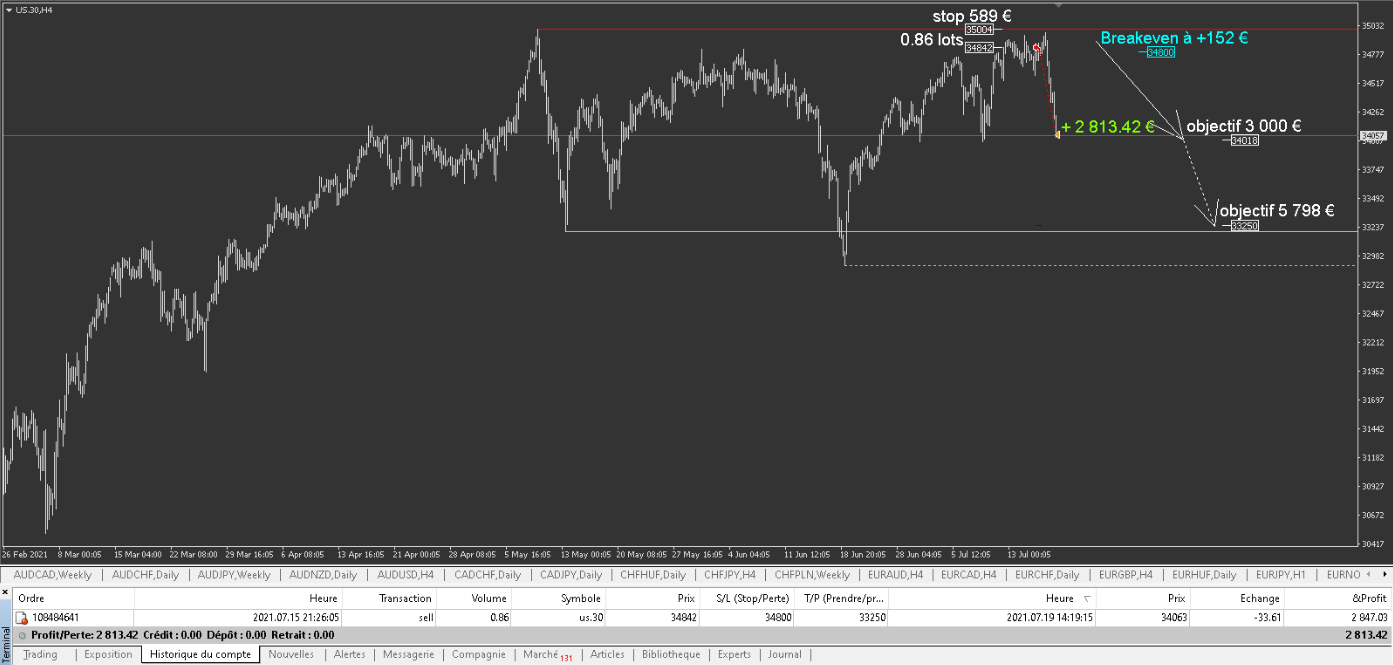 Me voici à la baisse sur le US.30 (Dow Jones)