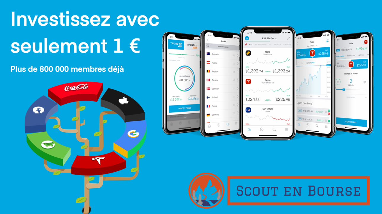 2- Trading212 Invest - pour investir sur Actions et ETF sans commission (action fractionnées possible à partir de 1 EUR).