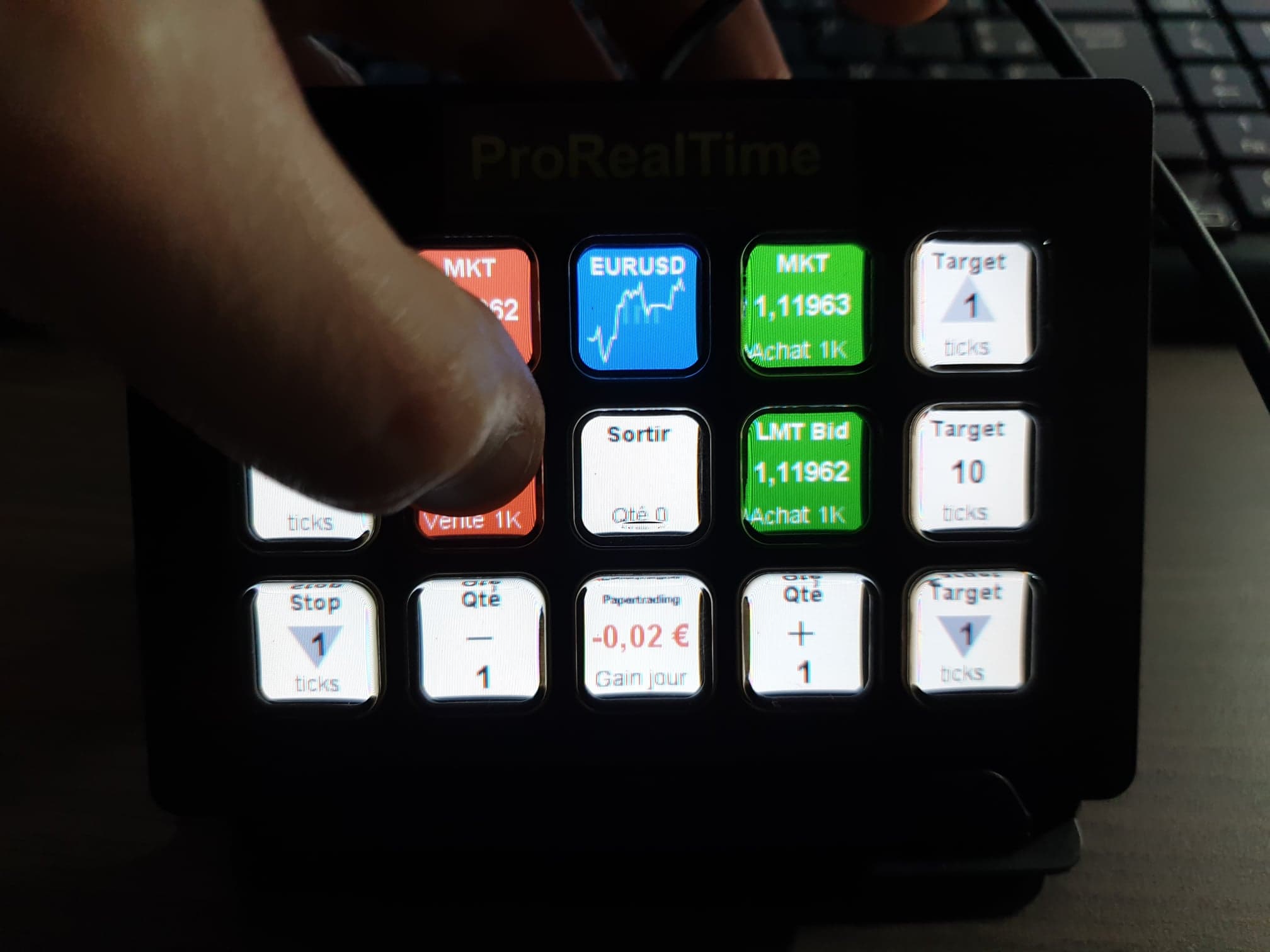 Oui, c'est le streamdeck adapté à et par ProRealTime. C'est bien fait, c'est stylé, mais je ne m'en suis pas servi dans mon trading.