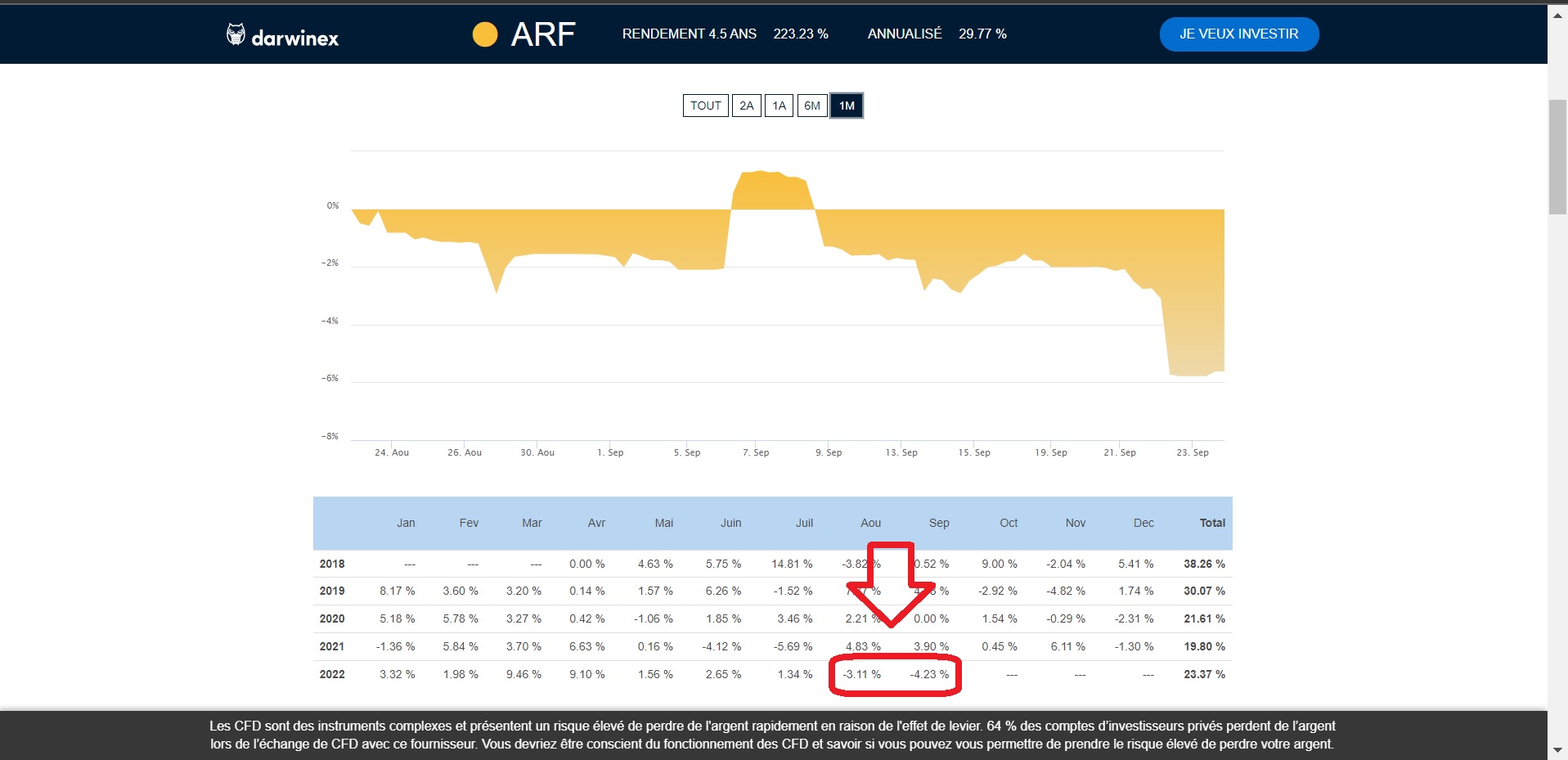 Certainement que ce Darwin se referra la cerise lorsque les prix recommenceront à ranger. Donc, peut-être faudra t-il y investir à ce moment-là, car, en effet cette mésaventure lui ait déjà arrivé par le passé (juin et juillet 2021) et la remontée fût tout aussi spectaculaire...