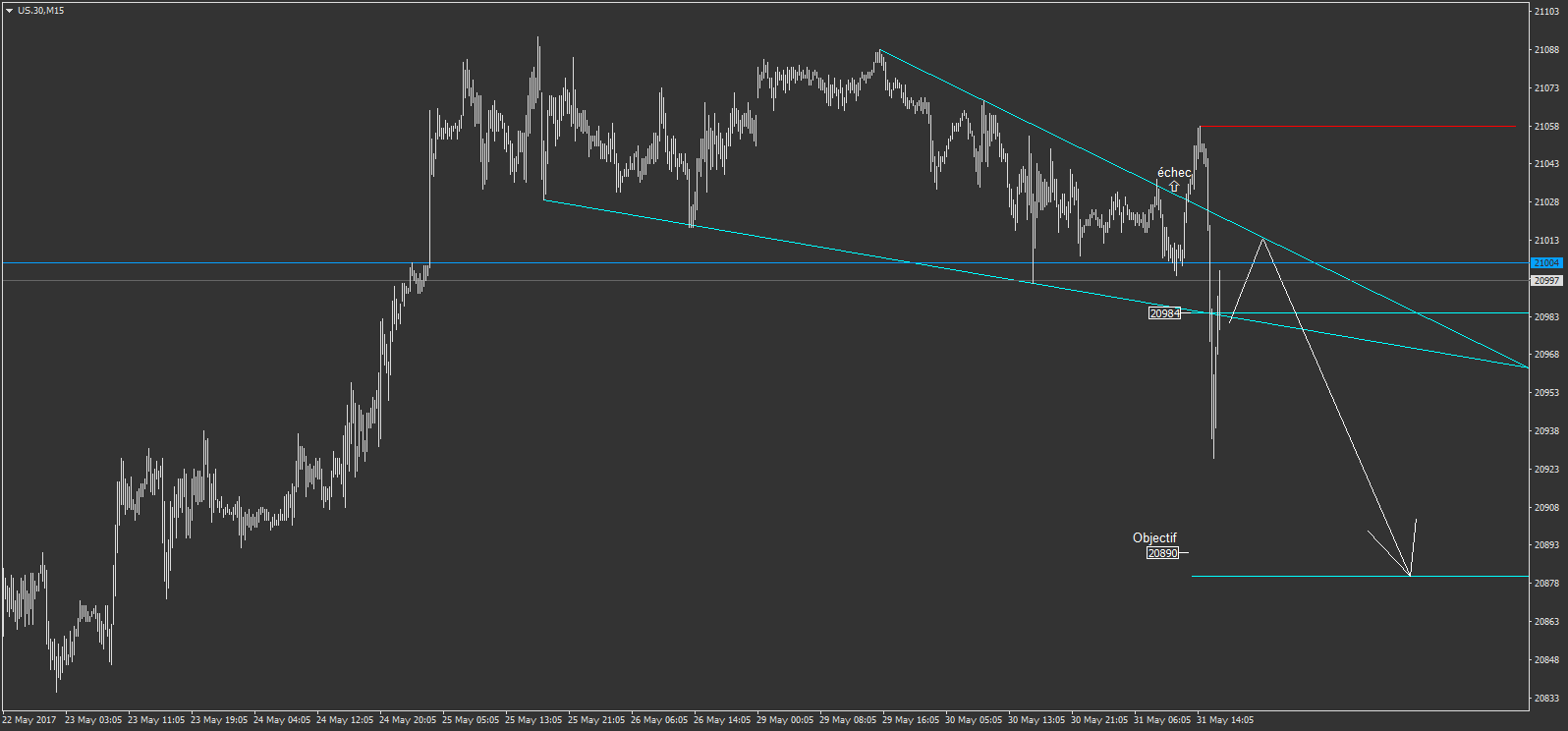 US.30 on a cassé vers le bas. il y a les NPF vendredi. a va bouger sur les indices!