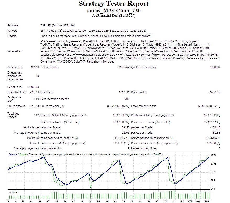 Je viens de faire un backtest sur EUR/USD sur l'année 2010 avec les paramètres de Dreamfab et le résultat est positif mais avec un drawndown de 66.07%!!!(voir piece jointe)