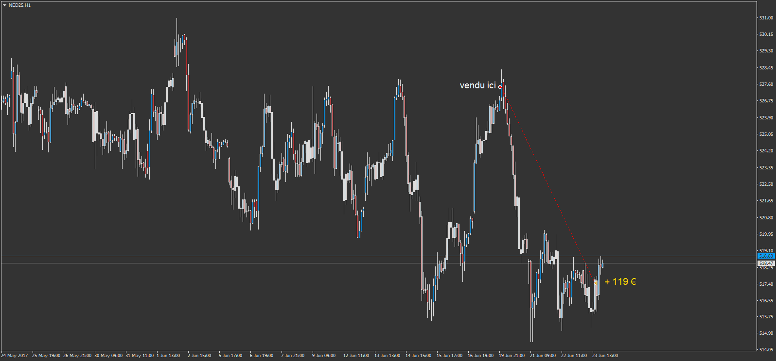 -sur le NED25, l'indice hollandais, j'ai clôturé ma position baissière pour +119 € .