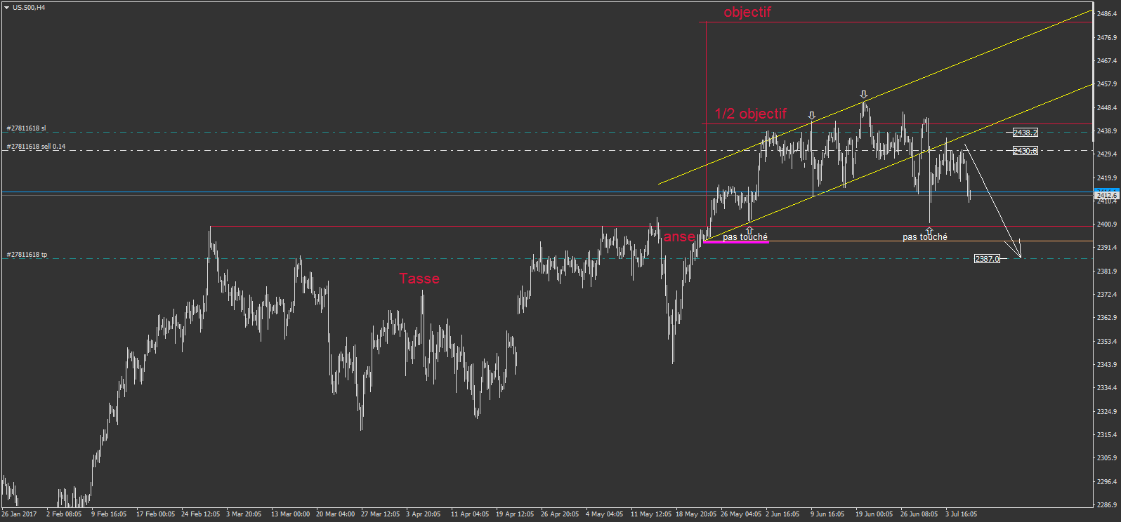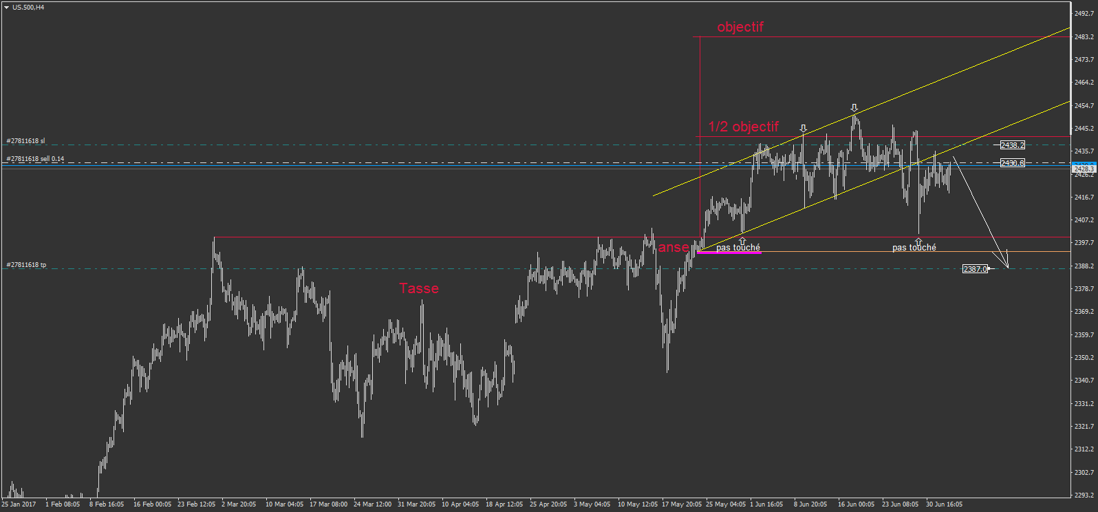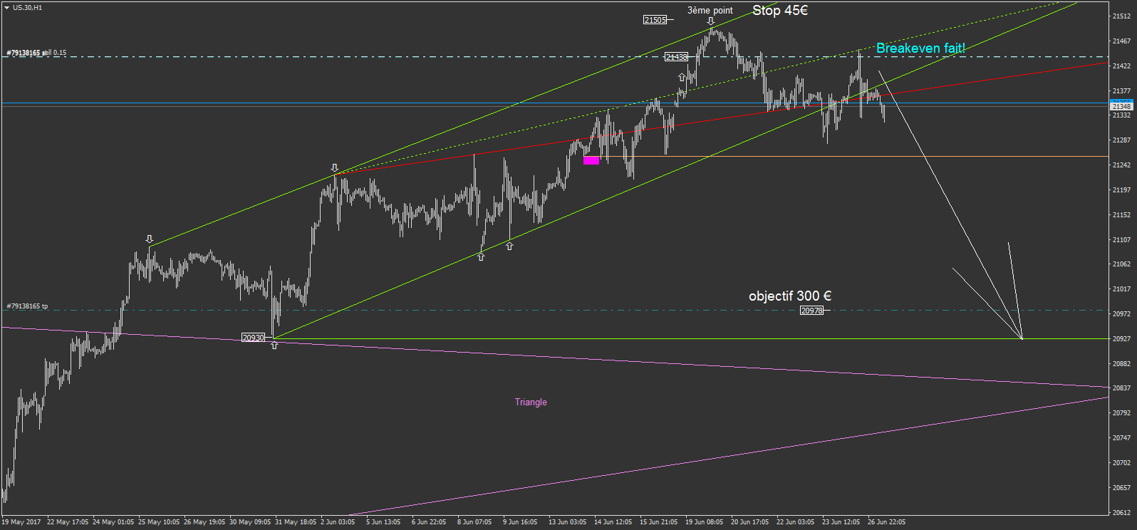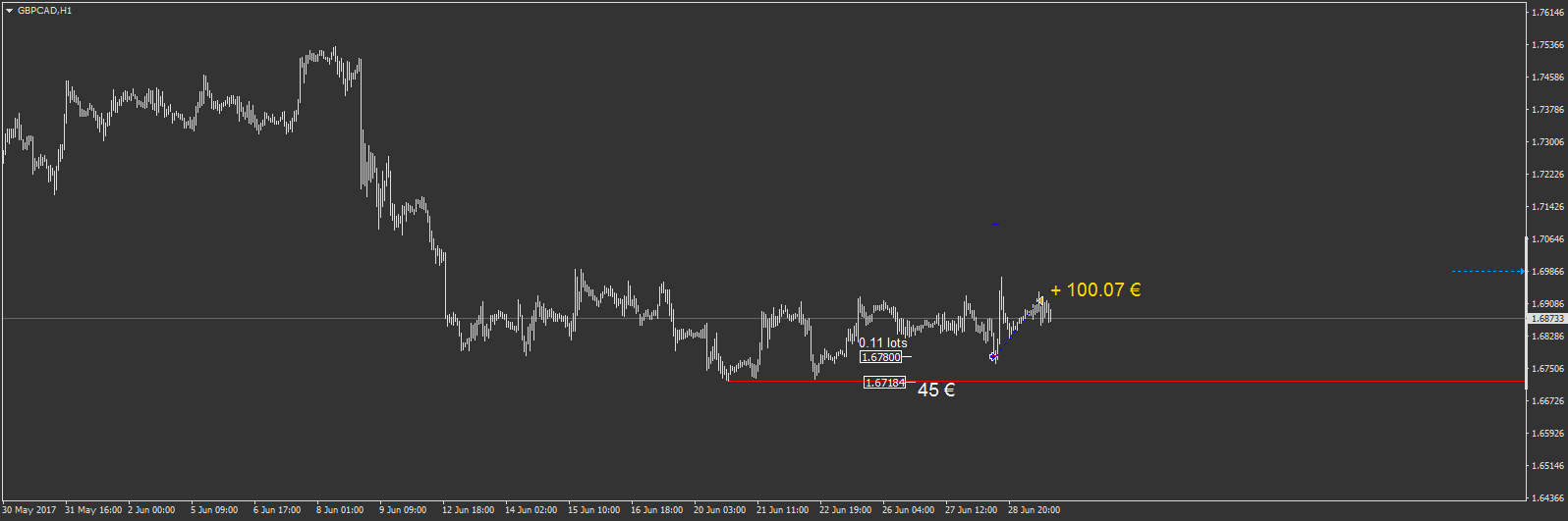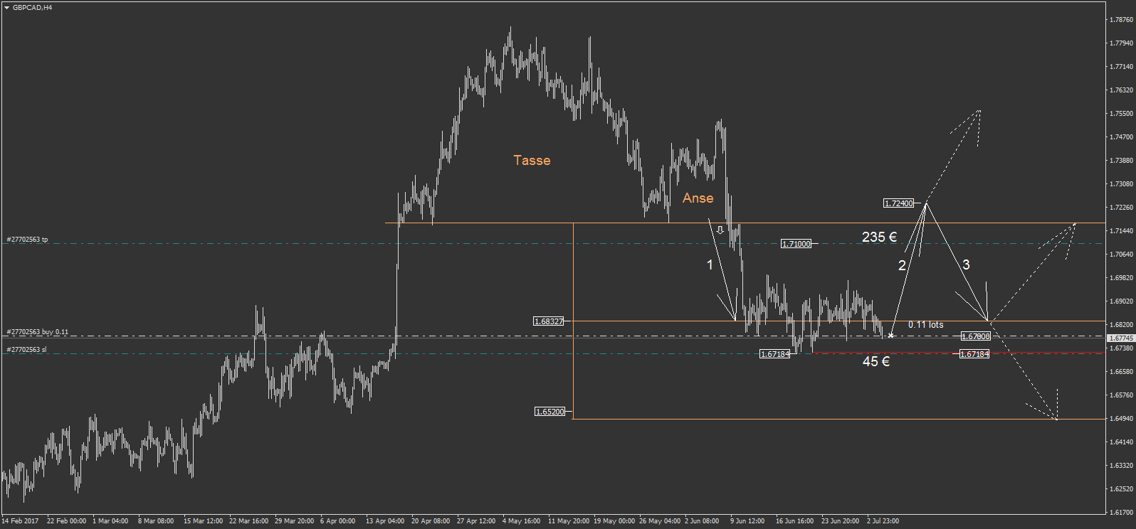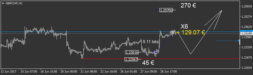 -sur le AUDUSD pour +193 € de gain. mon objectif initial était la ligne bleu foncé, mais je l'ai écourté après avoir anticipé avoir trouvé justement un point d'entré à l'achat sur ce niveau. mais je n'ai pas tenté ce point d'entré à l'achat...