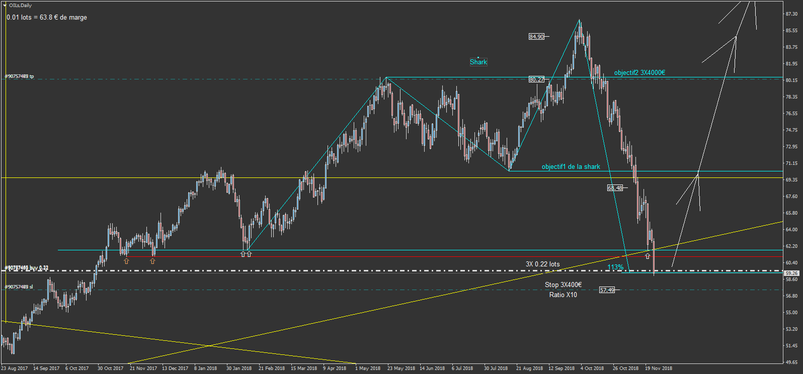 et un objectif long à 84.90 pour les 2X0.11lots restant (obj 2X2080€)