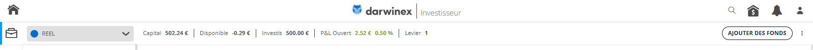 dépot initial 500 ( 501 déposé en + aujourd hui) tout sur darwin THA