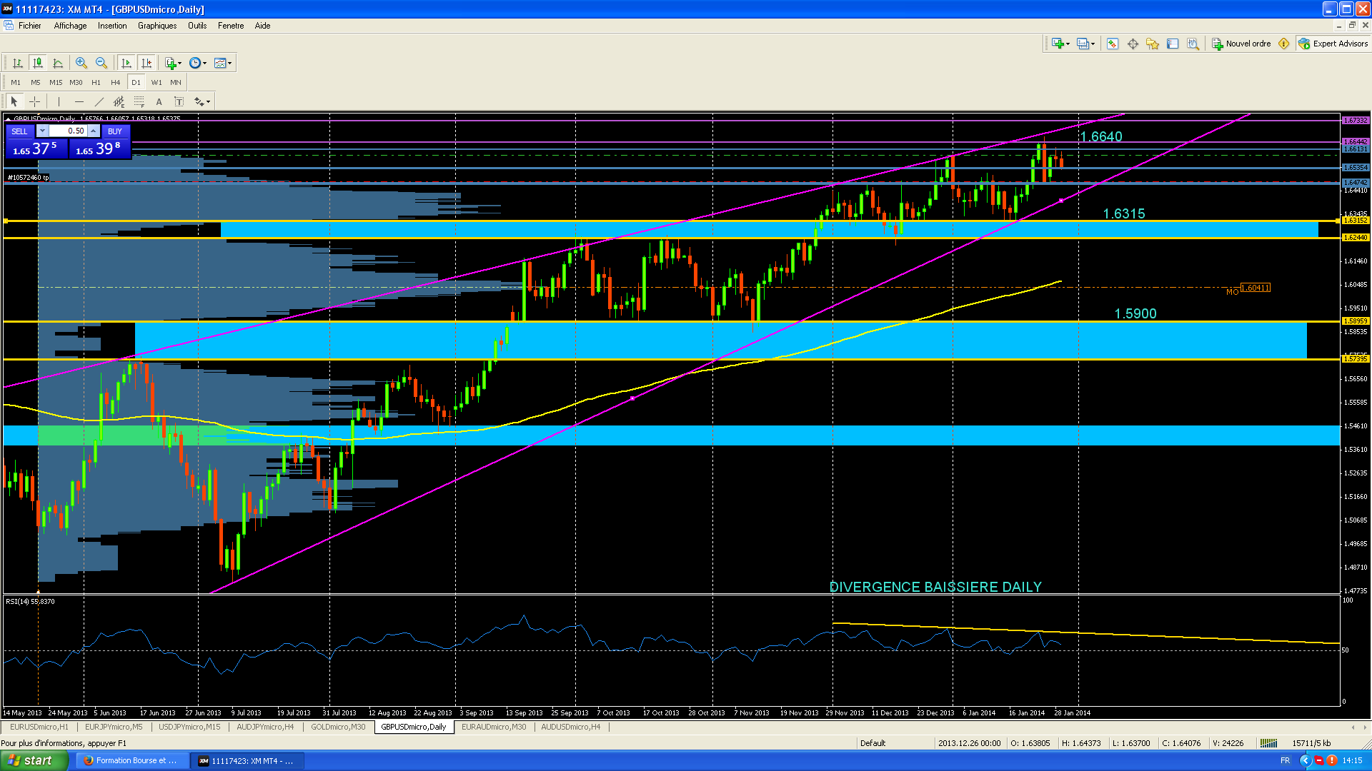 Beau triangle d'indécision en daily... La paire reste sous résistance (long terme). Pensez vous qu'on va partir vers le bas ? ou que la tendance haussière initiée en juin 2013 va continuer ?