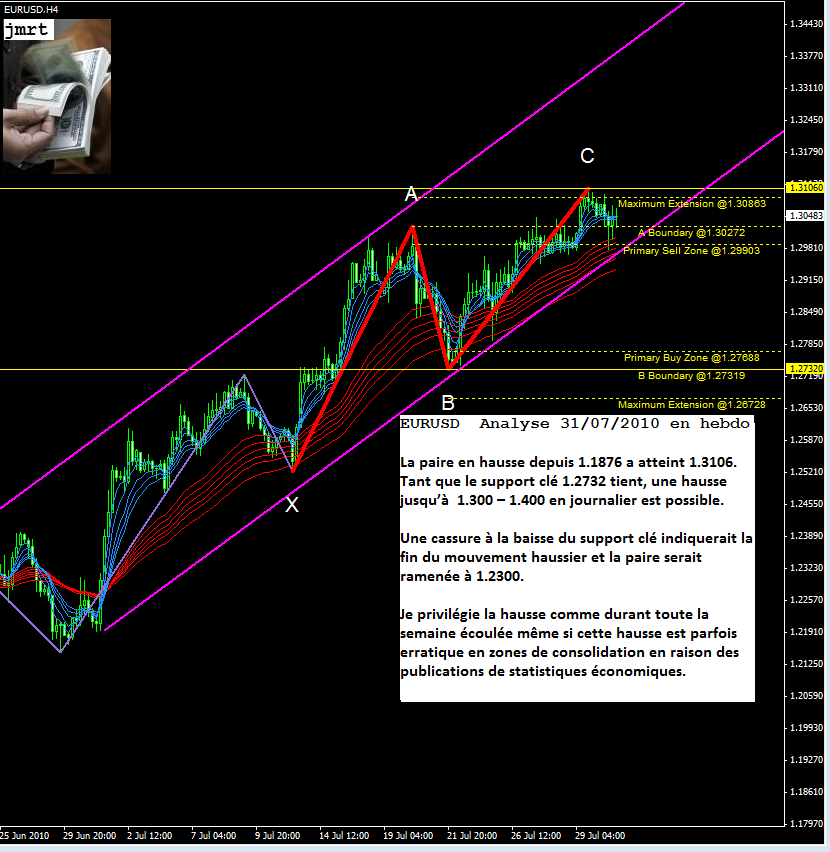 EURUSD Analyse 30/07/2010 en H4 à 5.30 am