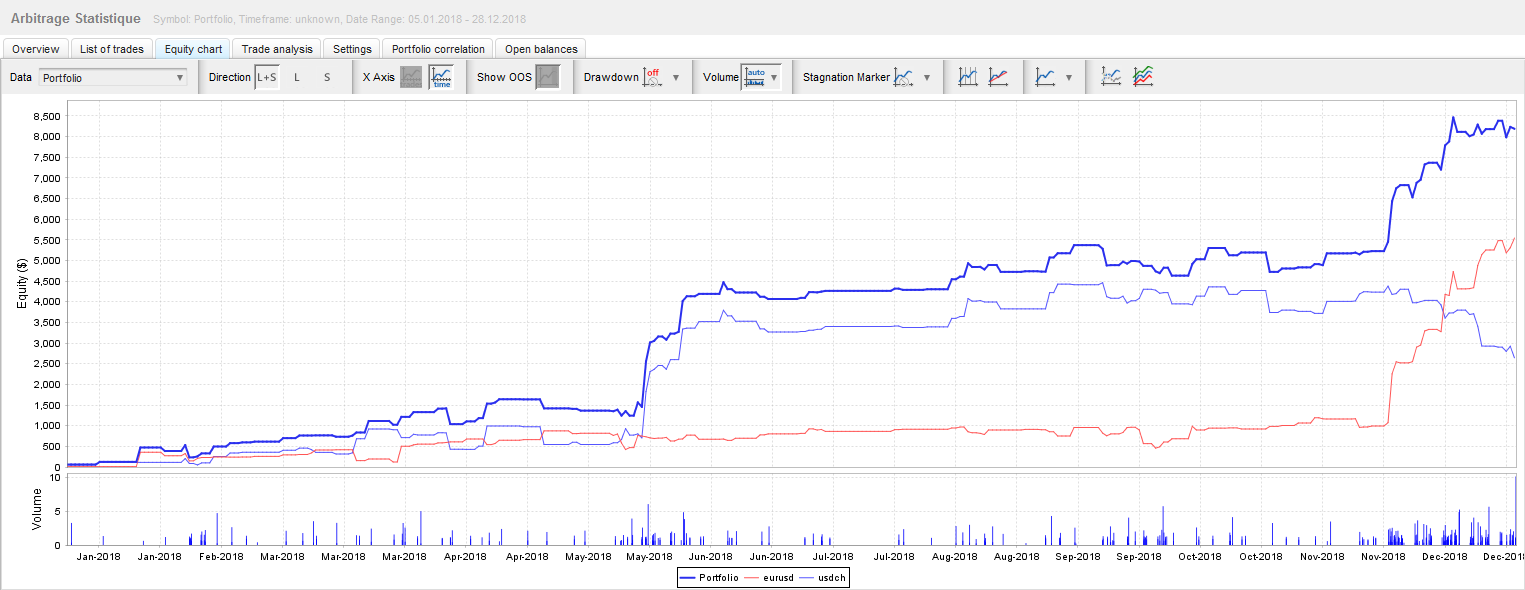 Backtest "arbitrage statistique corrélation" eurusd & usdchf 2015-2019