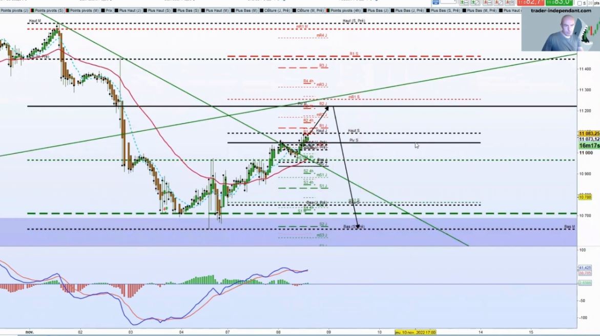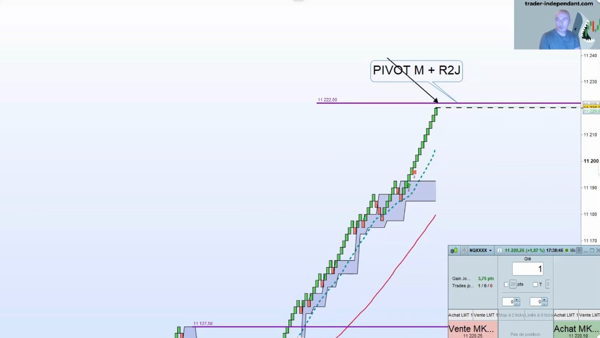 L'analyse initial de pré séance m'indique une limite pour les achats à savoir le pivot M (mensuel) qui est doublé de la R2J au point près.