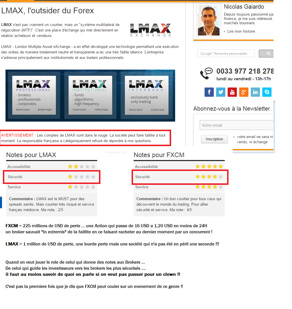 Comme ici par exemplenvitale a écrit :Quand certains commerciaux, desormais travaillant dans des entreprises en faillite ou presque, effrayaient les clients voulant ouvrir un compte a LMAX en leur disant que LMAX pouvait sauter a tout instant ou ne passerait pas 2014... Ironique.
