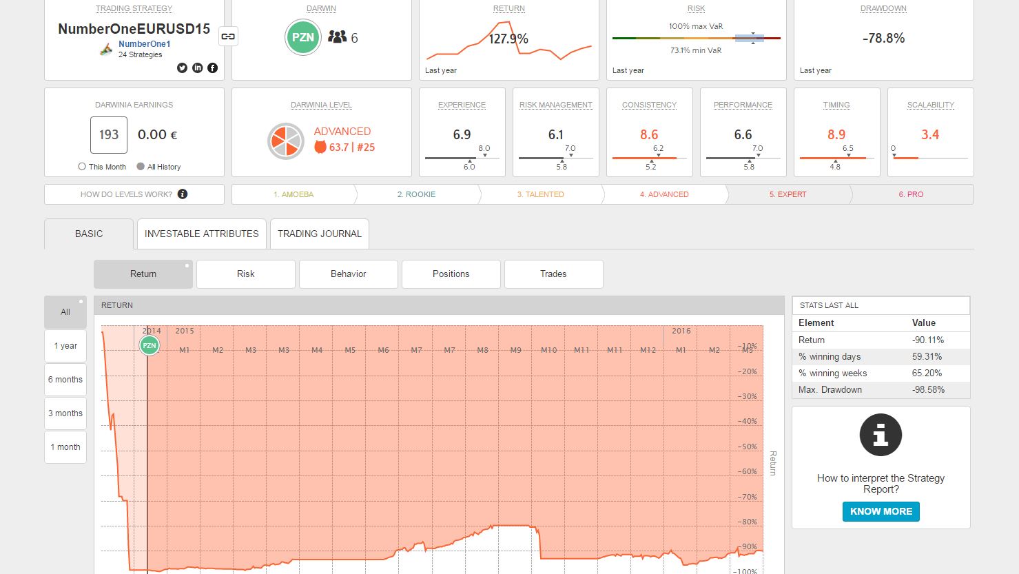 uXXar a écrit :Ce qui m'énerve le plus est de voir toujours les mêmes se voir attribuer des prix parce qu'ils ont de l'expérience et même si à performance négative ou commune. L’expérience fait tout, fait trop chez Darwinex à mon avis. Est-ce que je penserai la même chose dans deux ans ? Probablement car pour moi un trader doit être s'inscrire dans la durée certes mais aussi dans la performance et ceci à moindre risque. C'est que je j'appelle l'efficience.