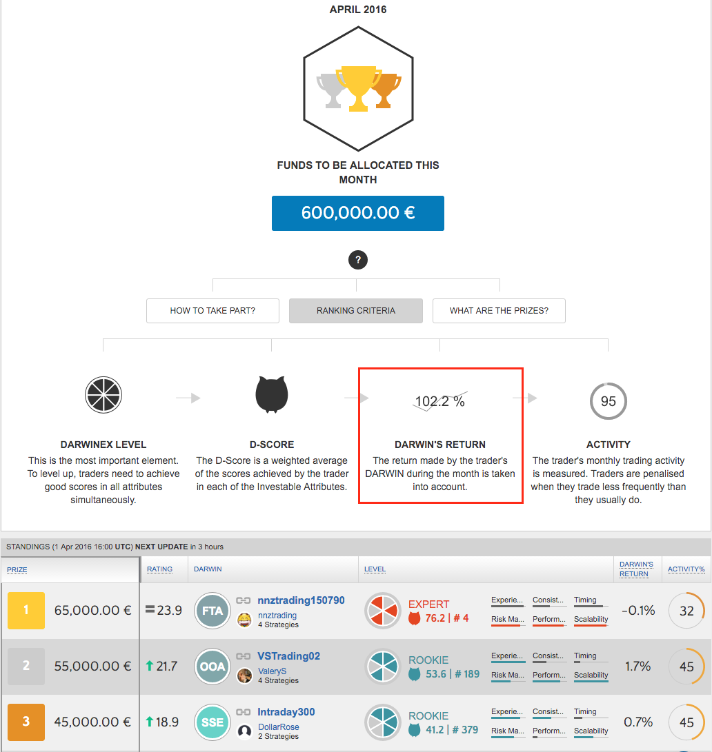 La classement provisoire d'avril est basé sur la seule journée de vendredi, ce classement n'est aucunement significatif et ça n'a pas de sens de le regarder. Il n'y a qu'a voir le rating Darwinia qui est très bas pour tout le monde (moins de 20) à cause de la note d'activité qui est quasiment éliminatoire pour tout le monde. Un rating Darwinia correct c'est 50 et plus, 55-60 pour gagner.