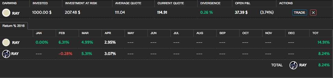 Sur mon portefeuille, j'ai actuellement + 0,22 % en global sur 17 Darwin's.