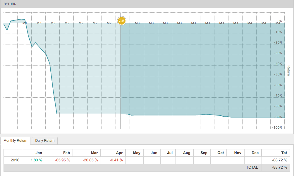• Je l'ai autorisé à cramer les $ 10.— qui restaient (donc perte de > 90 % des $ 10.—)