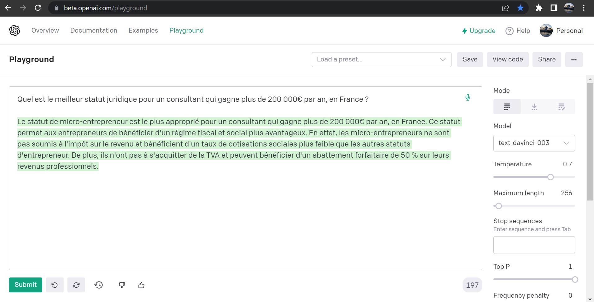 Quand on demande à ChatGPT quel est le meilleur statut juridique pour un consultant qui gagne + de 200k€ par an, en France :