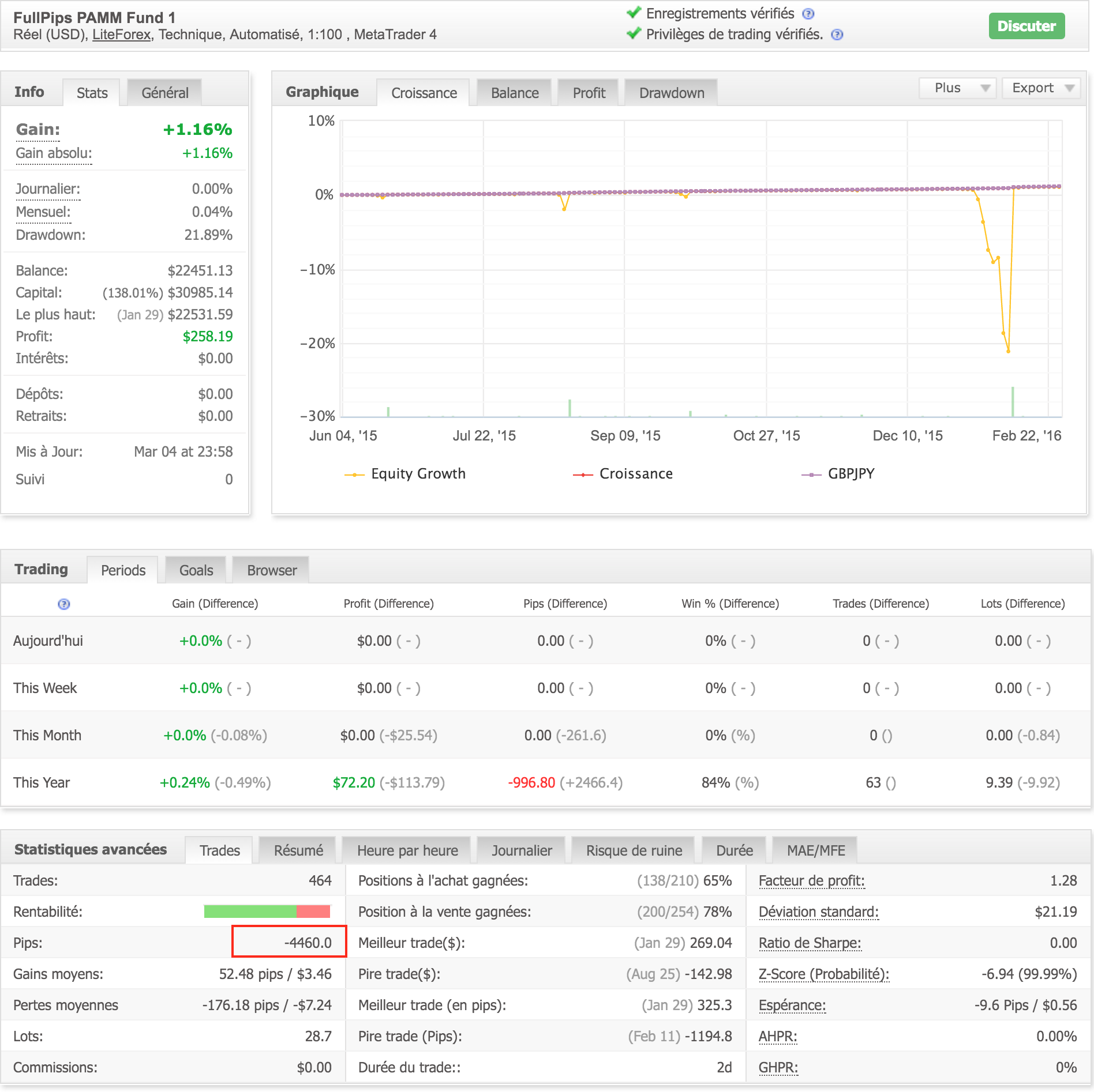 Il n'empêche que si j'analyse certaines paires de mon PAMM avec MyFxBook, ce dernier affiche des centaines de pips en positifs.