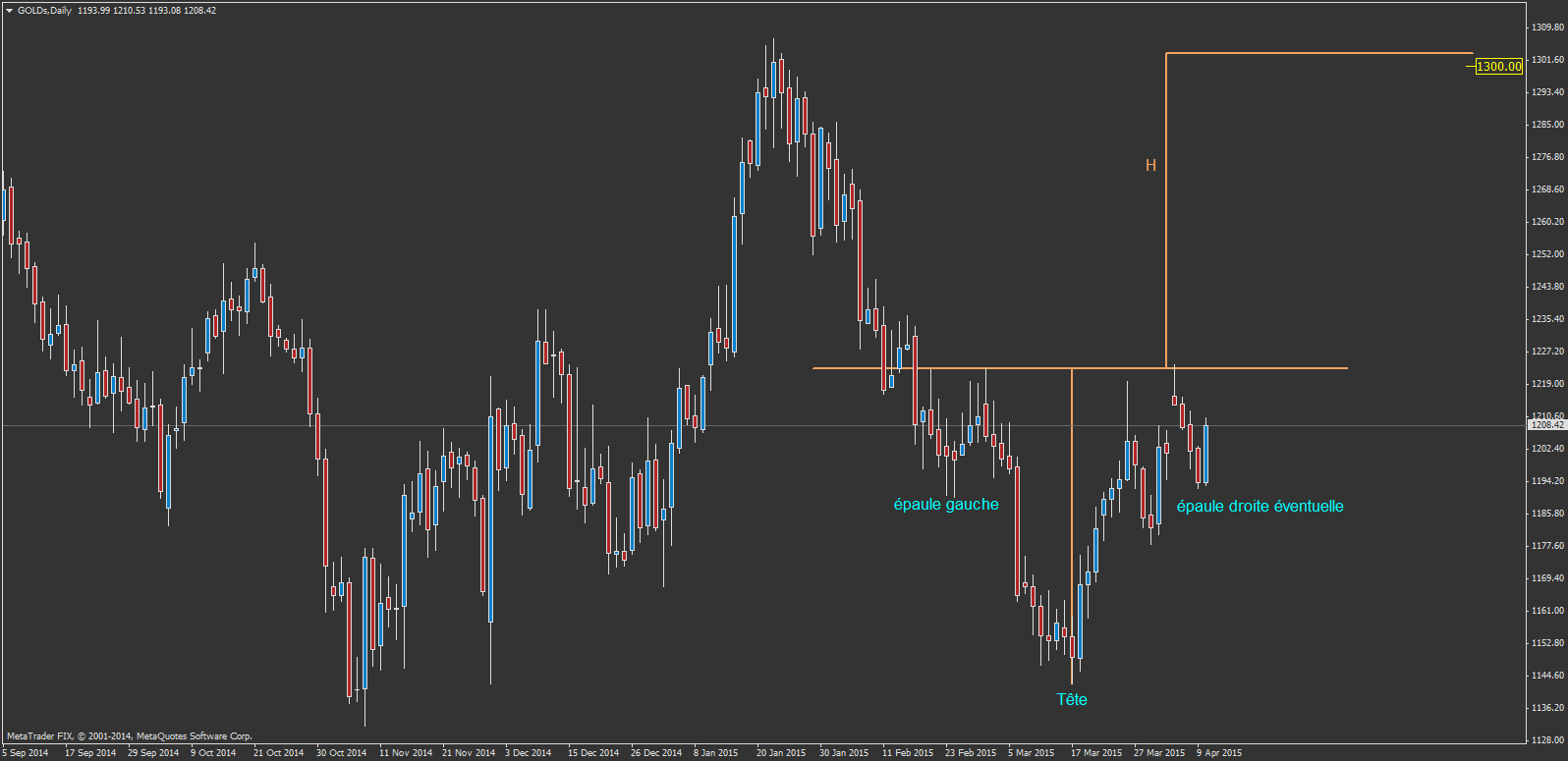 sur l'or, on peut éventuellement imaginé la formation d'une épaule tête épaule inversé dont l'objectif serrait un retour sur les 1300.