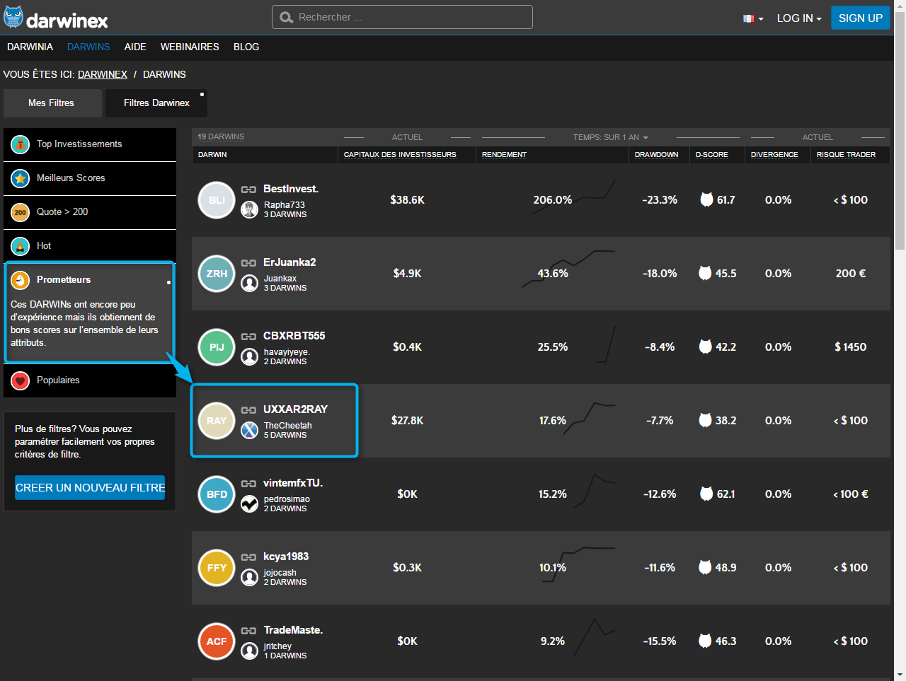Je n'ai pas dit que RAY n'est pas prometteur, mais j'affirme que le filtre "Prometteurs" n'est pas très pertinent ! Preuve en est qu'il n'y a que RAY qui soit dans mon portefeuille. Plus de la moitié des Darwins filtrés sont de pures daubes.