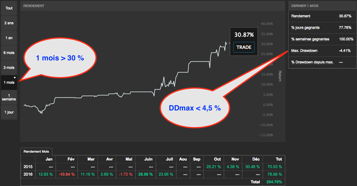 Le tout avec une divergence bien positive, et un DD très faible :)