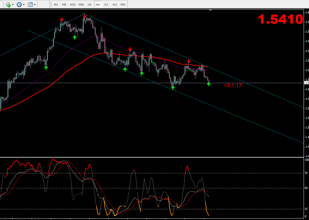 En cas de franchissement à la hausse de cette dernière en effet on pourrait accélérer jusqu'à la EMA200 vers 1.54.