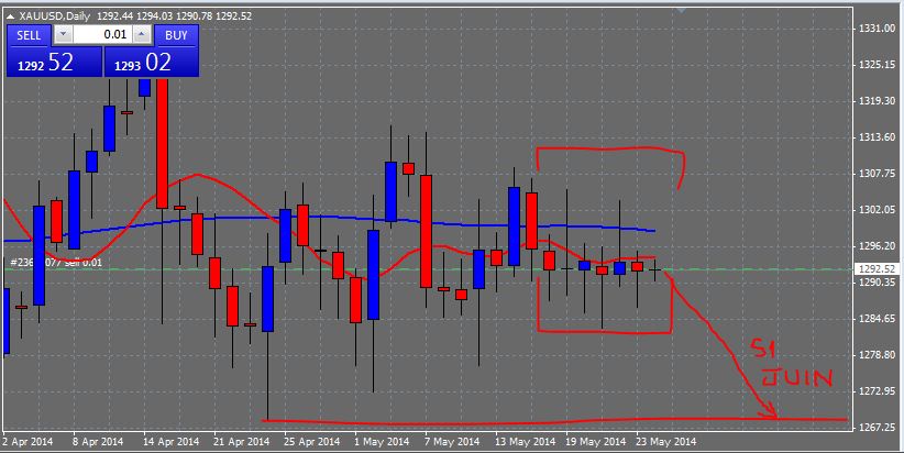 et comme de part hasard la zone de prix des 1270$ nous avons 4 semaines du 19.01.2014 au 09.02.2014 ou ce prix a fait office de support et résistance et encore une autre fois ces derniers jour regardez vos graph en weekly vous verrez la semaine du 20.04.2014 le prix est venue ce poser comme une fleur dessus....comme dirais je sais pas qui "moi je dis ça ,je dit rien....ouch"