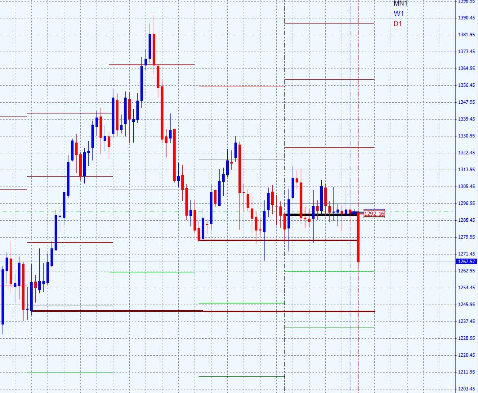 voici les chiffres en imaginant le prix de clôture pour avoir une zone approximative des support de juin j ai donc spéculé la clôture mensuel a 1290 $ l'once .