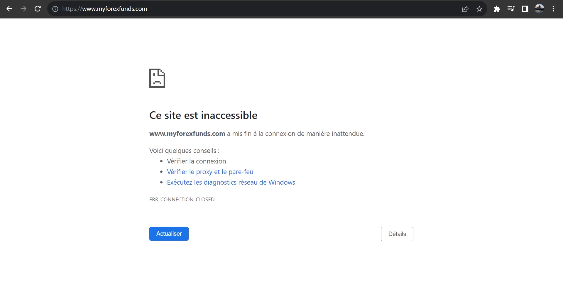 Le site web de "My Forex Funds" est désormais totalement inaccessible : https://www.myforexfunds.com/