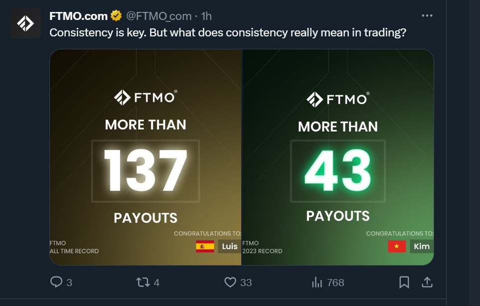 Les records de paiements pleuvent chez FTMO : https://x.com/FTMO_com/status/1740369984767832121?s=20