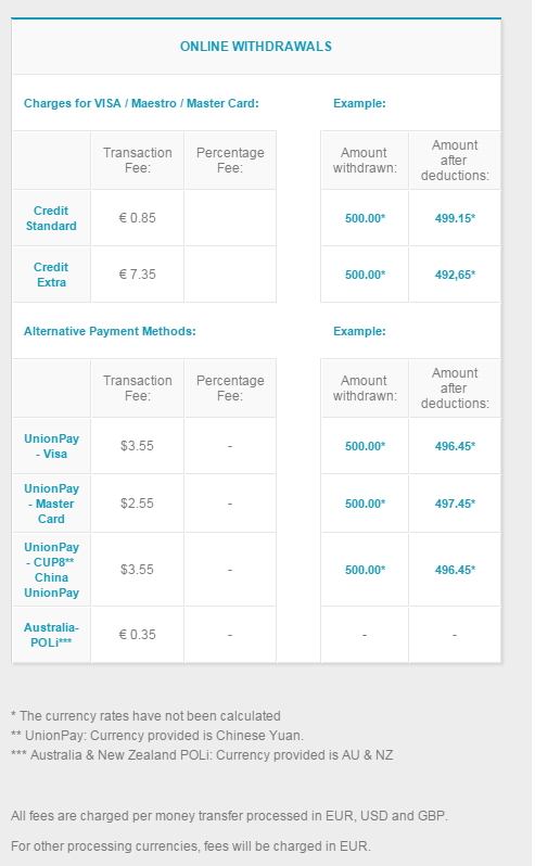 je vous rappelle également que notre prestataire pour les dépots par carte bancaire (SafeCharge) prend des frais dont vous trouverez le détail ci-dessous:
