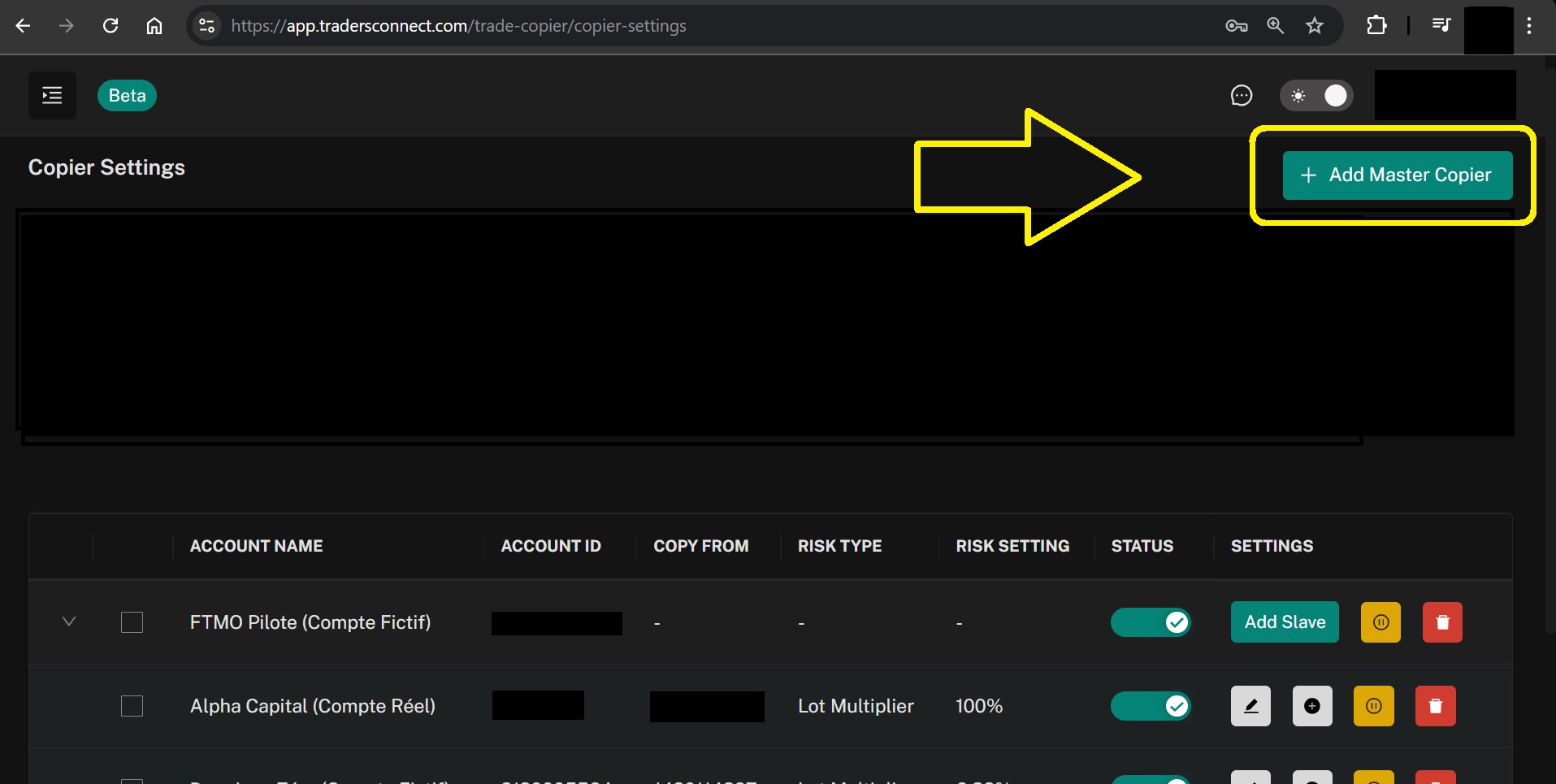2) Est-ce qu’il est possible d’utiliser le trade copier en ayant plusieurs comptes master ? (ex : un compte master par prop firm)