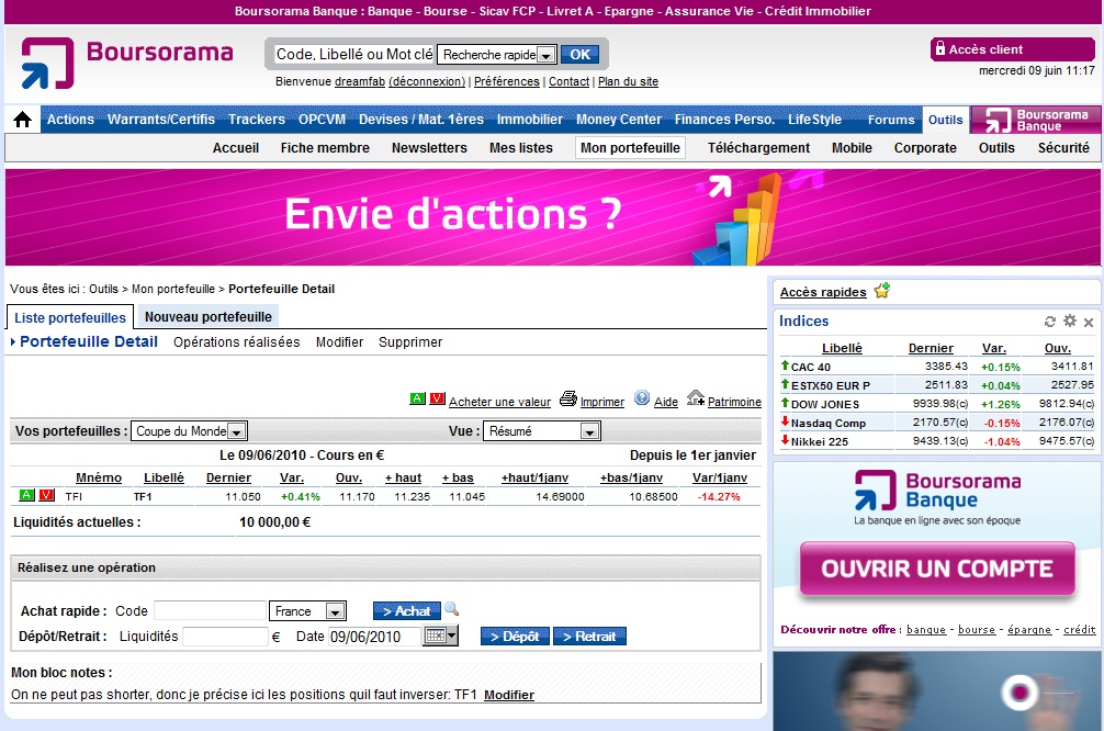 J'ai donc ouvert mon compte virtuel chez boursorama pour trader ce projet.