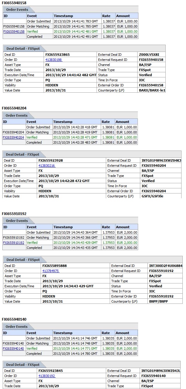 J'ai demandé des rapports d’exécutions concernant des ordres que j'avais passé la semaine dernière, histoire de voir quels sont les fournisseurs de liquidité qui étaient mes contre-parties: