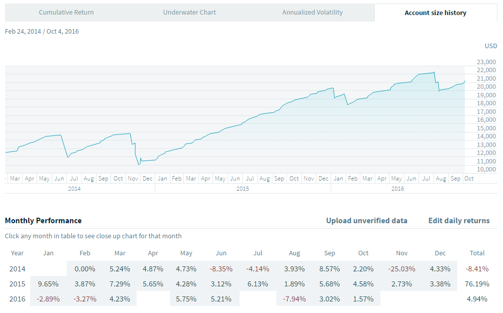 Pour l'instant cette stratégie fait partie de l'ensemble de stratégies que j'utilise dans mon compte principale dont j'ai publié les résultats 2014 et 2015 sur ce forum.
