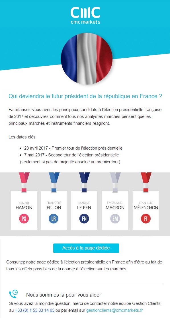 CMC Markets vient également d'envoyer un mail à ses clients à propos des élections Présidentielles: