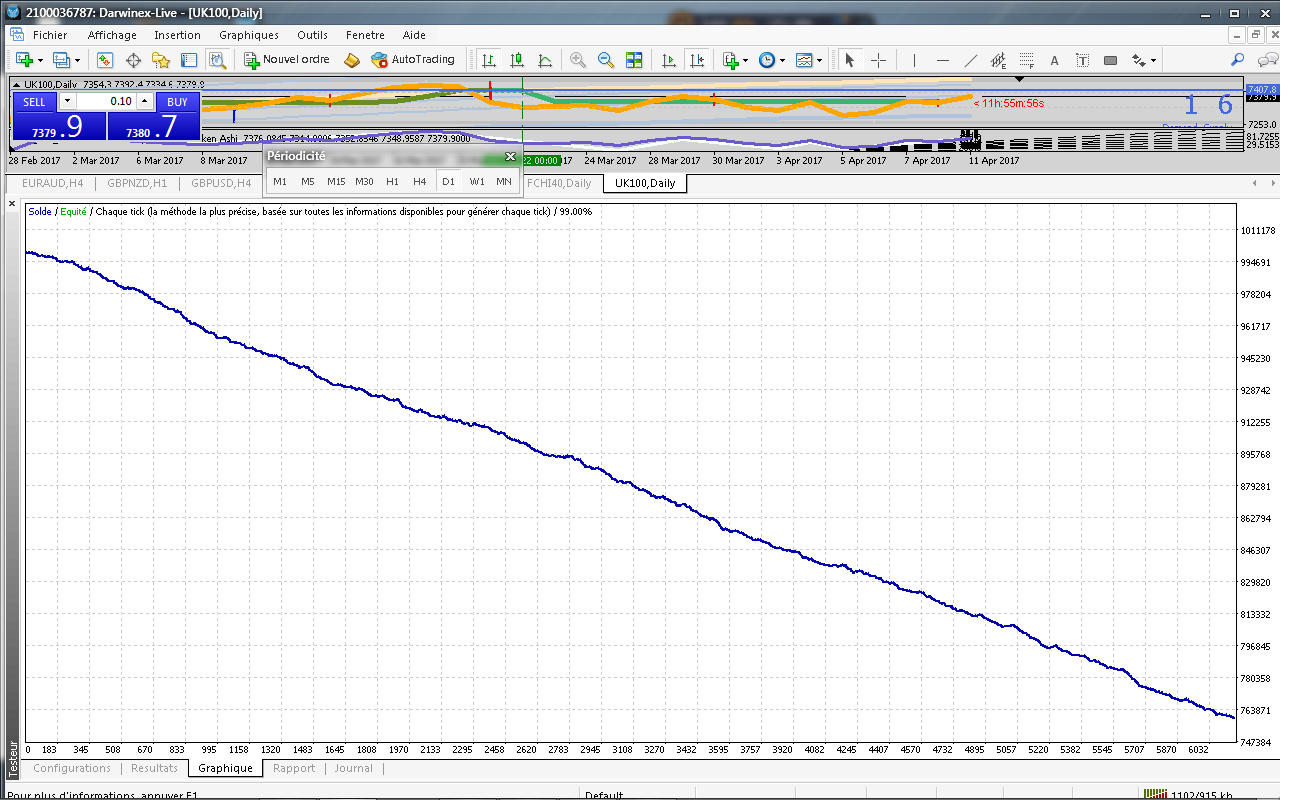 Bon j' ai bien backtesté l' ea, alors sur certain instrument c' est complètement fantaisiste et relève a la limite de la tricherie au niveau des fermetures de trade. Sur d' autre c' est pas pertinent, comprendre on gagne un peu ou le contraire, mais sur certaine devises et quelque rares indices si le résultat a la perte est authentique je pense qu' il est obligatoire de commencer un test démo avec prise e trade a l' envers, et garder les clotures qui sont le plus souvent fantastique.