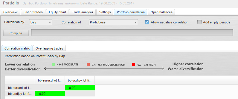 La stratégie est bien décoléré entre l'eurusd et l'usdjpy donc c'est une bonne diversification.