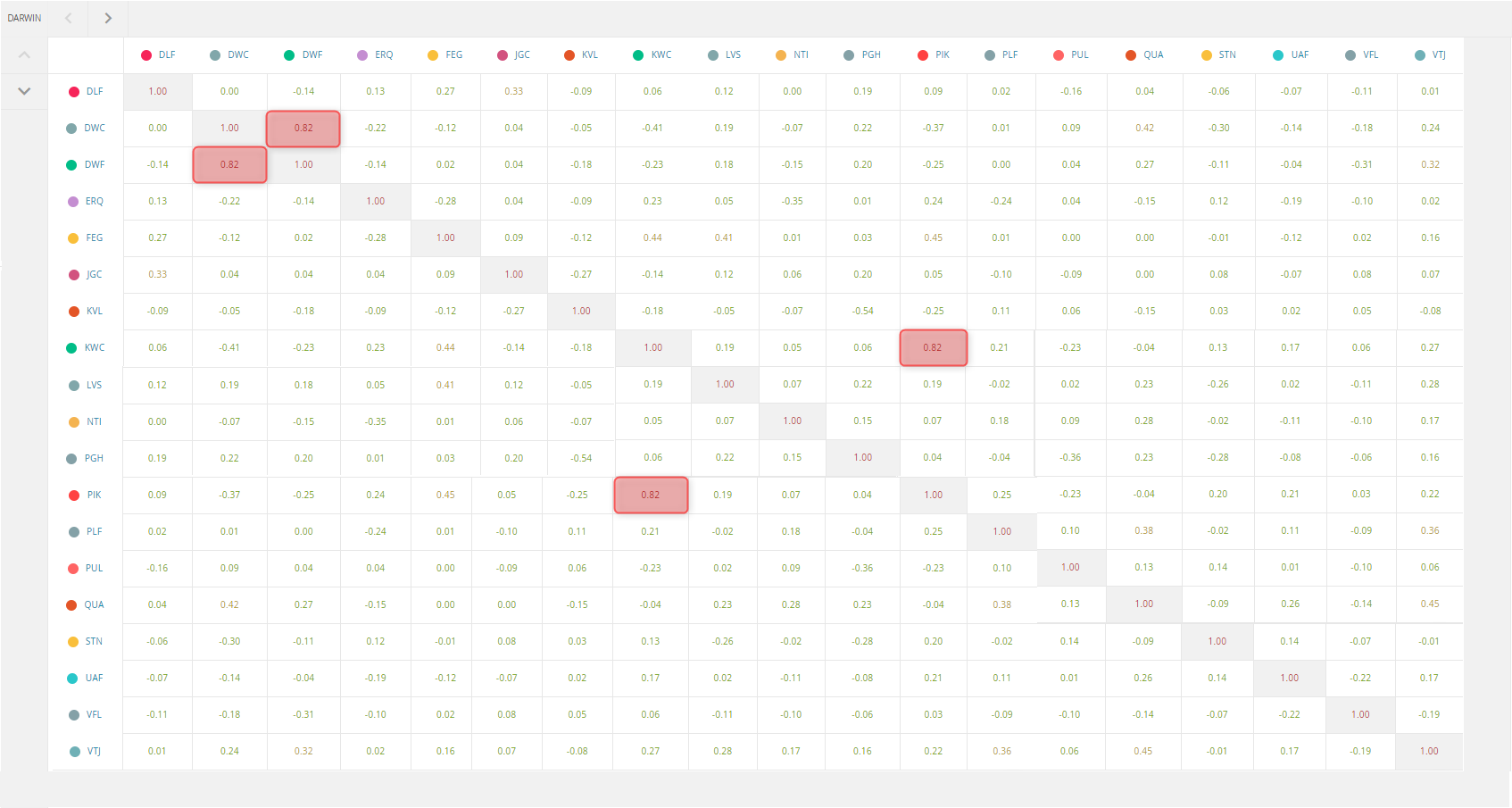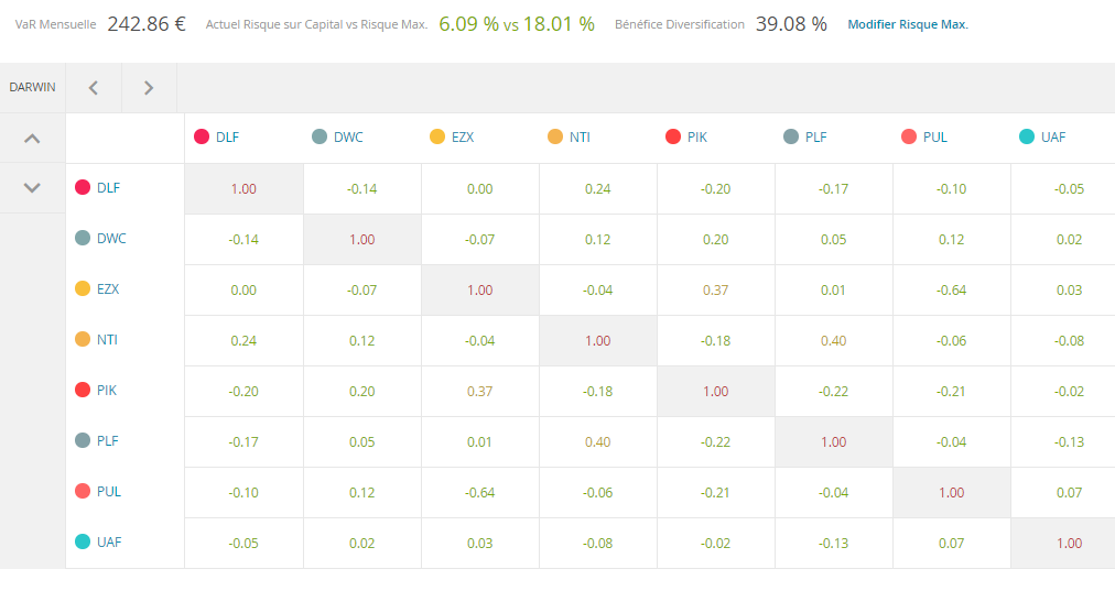 Voici la liste des DARWINS pour ce portefeuille