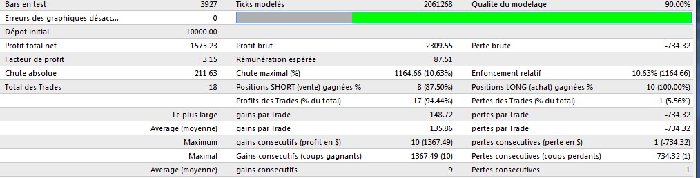 Test sur EUR/USD sur 15min du 01/11/2010 au 20/12/2010(1 mois)