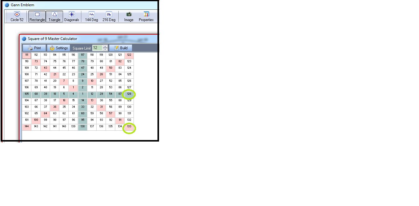 Tableau de Gann : Nous avons les prix 1.27 - 1.30 - 1.33 Si les 1.33 est rejeté on pourrais revenir vers ses prix et meme projeté vers les 1.28 sur du long terme sur cette parité.