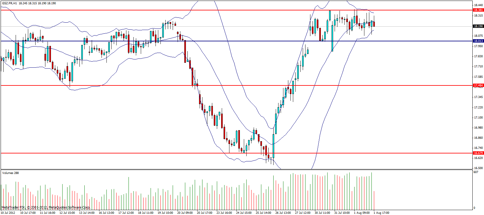 on notera sur le graphique en H1 que nous avons une belle zone de compression qui s'est mis en place comprise entre 18.40 et 18. Acheteurs au-dessus de la résistance et vendeur sous le support. Objectif à la hausse les 19 euros. A la baisse les 17.5.