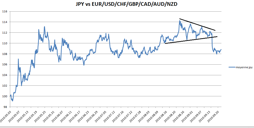 Je suis ok avec Herzou pour acheter usd/jpy dès que possible. Par contre l'objectif n'est pas un peu éloigné? On pourrait peut être le faire en 2/3 trades si le scénario se vérifie? Quelqu'un serait d'accord pour augmenter la position vendeuse sur l'eurodol si cassure de la trendline 1 (avec stop se...