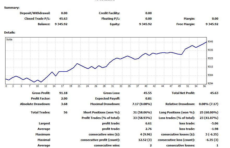En entrant à heure fixe, à lot constant et avec Time Stop et TPs fixes (plus ou moins car j'ai pas bien lu) je vois pas pourquoi tu ne proposes pas un backtests conséquent. Tu aurais ainsi sur plusieurs années une EC et un maxDD etc
