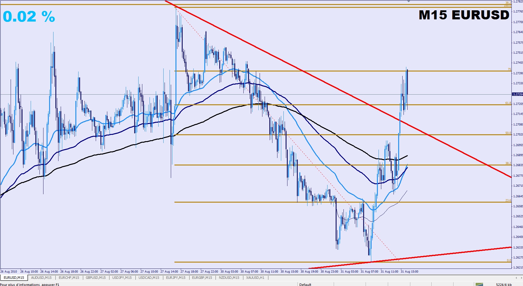 On s'approche de ce seuil de retournement, et on a retracé 75% de la phase baissière du 27 au 30 aout.