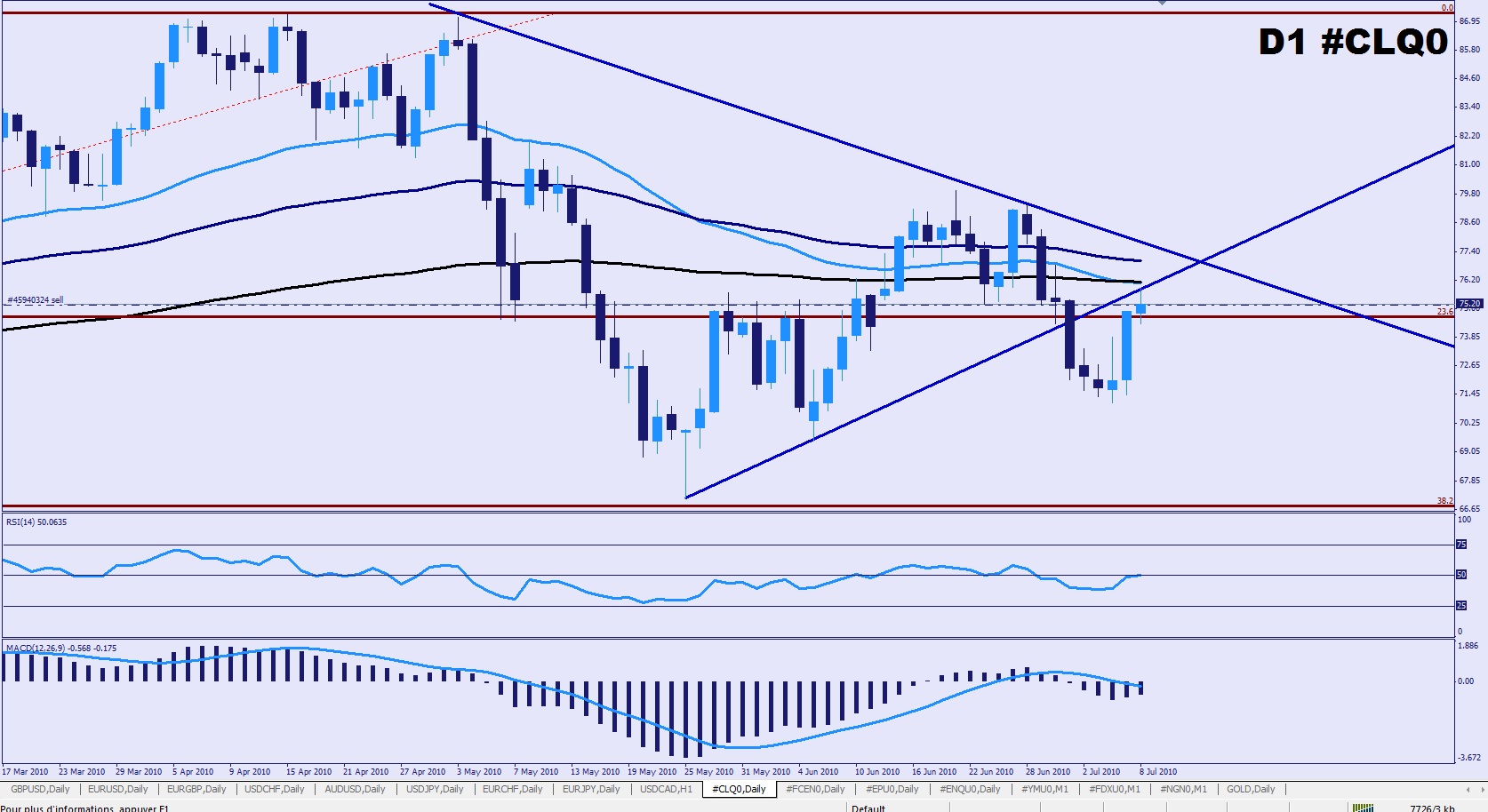 Je suis du même avis de trader59, pour moi le support est à 73$ environ, des prises de positions en short sont envisageable avec des sl très serré et des achats haussier pour les + patient; mais avec des sl qui peuvent supporté des moment de très forte volatilité.