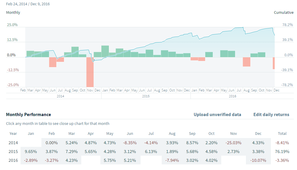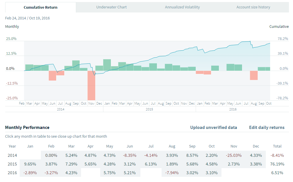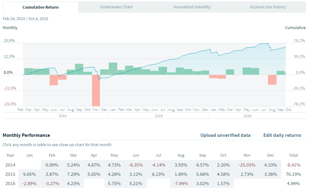Pour l'instant cette stratégie fait partie de l'ensemble de stratégies que j'utilise dans mon compte principale dont j'ai publié les résultats 2014 et 2015 sur ce forum.
