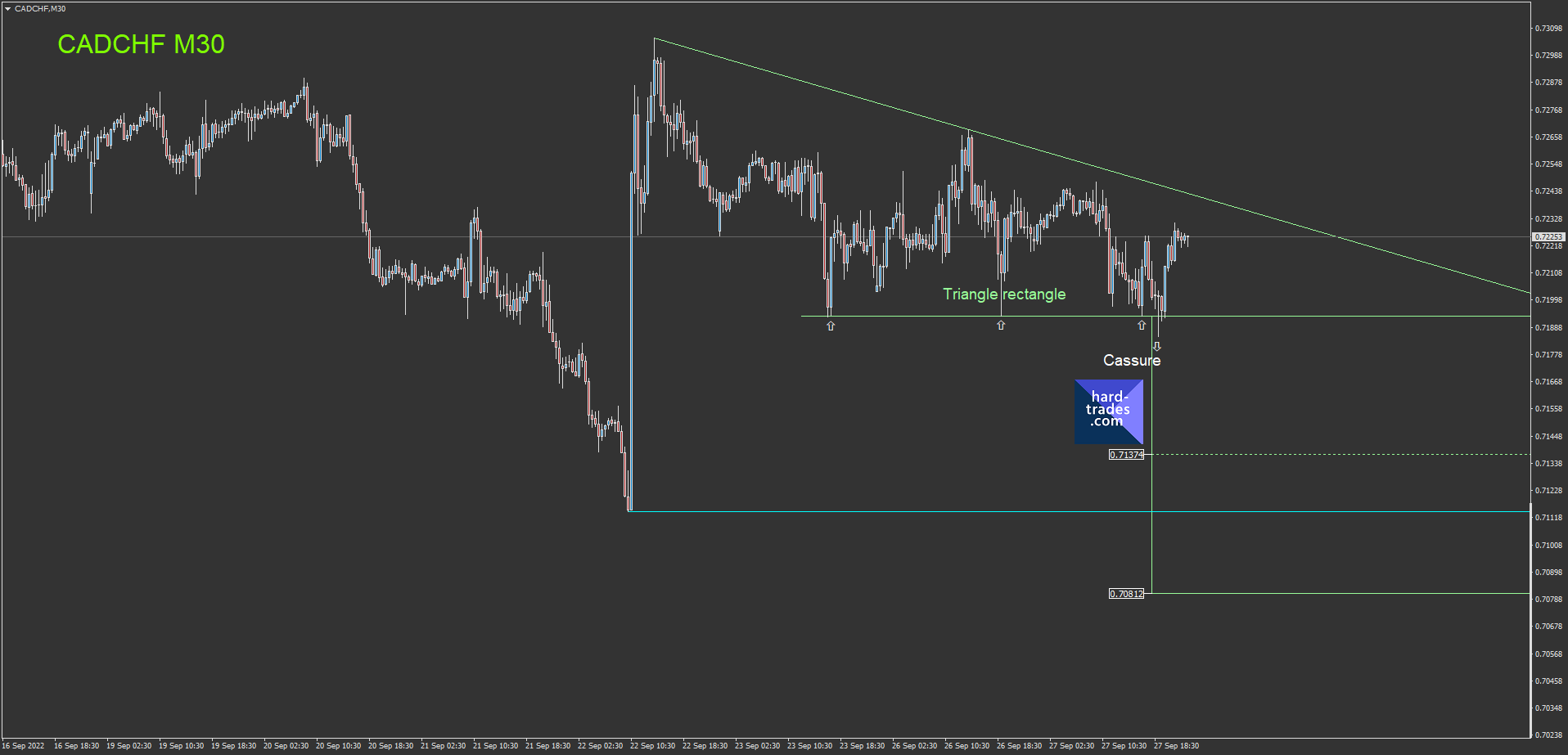 L'idée de mon trade, est une idée de contre attaque de la cassure baissière du triangle,
