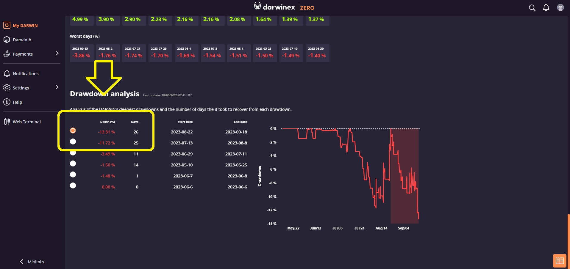 Il s'agit de Temps passé en Drawdown, aussi appelé "Underwater" chez Fundseeder aux USA.
